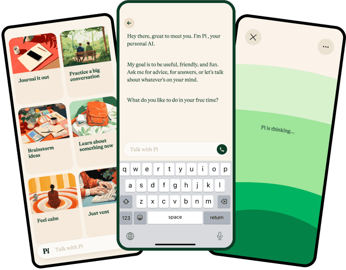 Pi is always curious, kind, and ready to help you think, plan and grow.